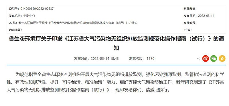?VOCs無組織排放監(jiān)測新規(guī)范,你安裝對了嗎,為進(jìn)一步規(guī)范指導(dǎo)全省生態(tài)環(huán)境監(jiān)測機(jī)構(gòu)開展大氣污染物無組織排放監(jiān)測,更好支撐大氣污染防治工作,近日,江蘇省生態(tài)環(huán)境廳研...